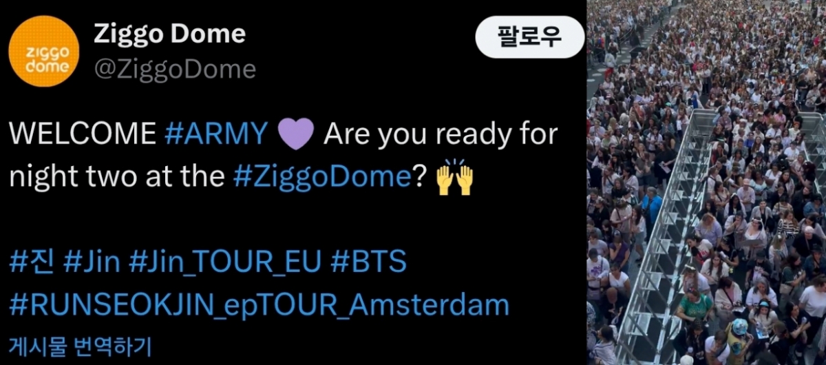또 쉴 틈 없이 진의 공연 영상과 진을 보러 지고돔을 찾은 수많은 인파 영상을 게재하는 등 남다른 애정을 표현하기도 했다.