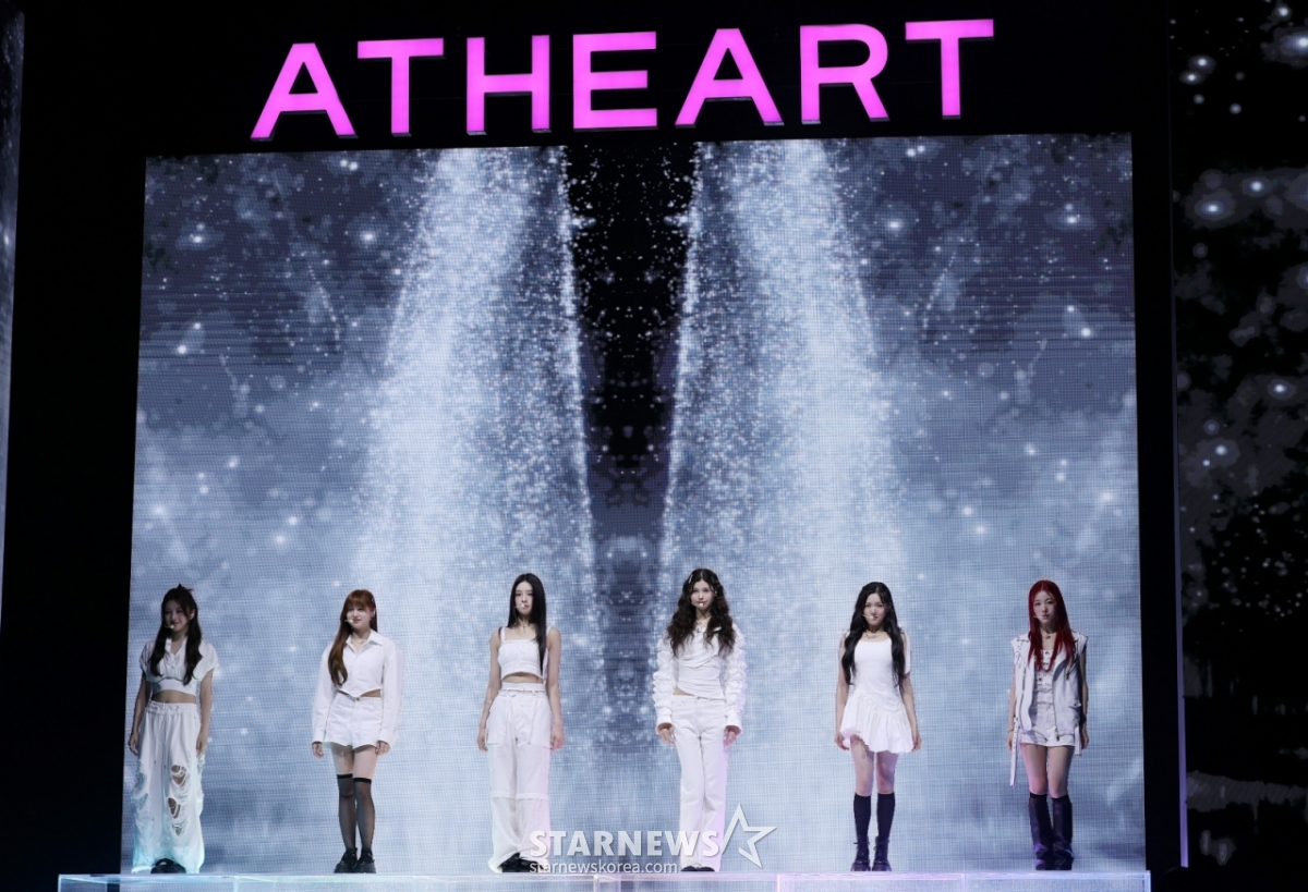 앳하트(미치, 서현, 나현, 케이틀린, 봄, 아린, 아우로라)는 13일 오후 서울 용산구 한남동 블루스퀘어 SOL트래블홀에서 첫 번째 미니앨범 '플롯 트위스트(Plot Twist)' 발매 기념 데뷔 쇼케이스를 개최했다.