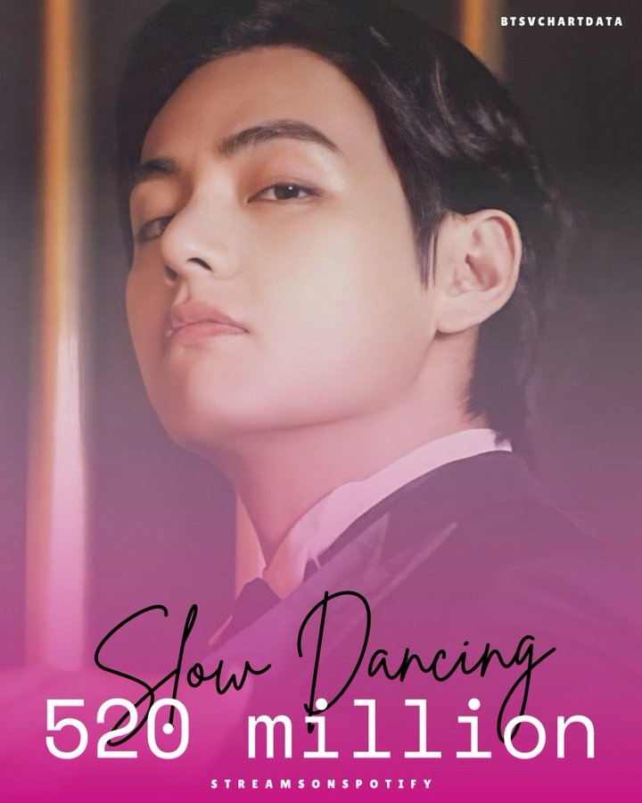 뷔의 '슬로우 댄싱'은 최근 스포티파이에서 5억 2000만 스트리밍을 돌파했다.