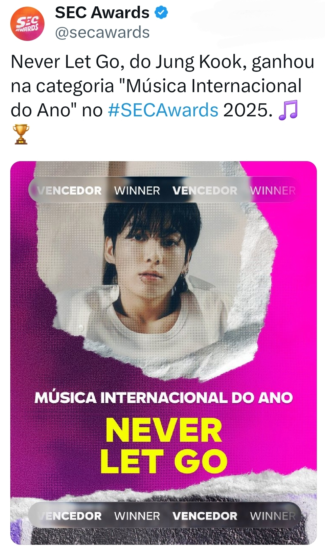 브라질 엔터테인먼트 웹사이트 'Seriesemcena'는 공식 홈페이지와 SNS를 통해 '2025년 SEC 어워드'(2024 SEC Awards)를 개최했다.
