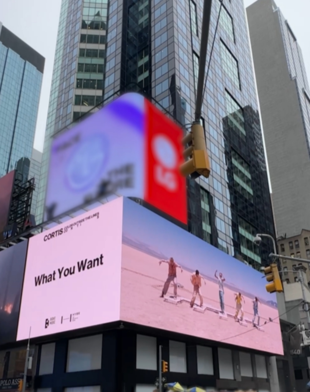 미국에서는 이달 말까지 도심 곳곳에서 코르티스를 만날 수 있다. 가장 큰 관심을 받고 있는 장소는 '뉴욕의 심장'으로 불리는 타임스퀘어다. 타이틀곡 'What You Want'에 맞춰 트레드밀 위를 넘나들며 춤추는 모습이 대형 LED에서 재생돼 이목을 사로잡는다. 쇼핑으로 유명한 뉴욕 소호 거리, 웨스트 할리우드 K-타운 등에도 멤버들의 초상이 걸렸다. 이에 더해 유튜브 뮤직이 로스앤젤레스 선셋 대로의 대형 전광판에 코르티스를 소개하는 영상을 게재하며 응원을 보냈다.