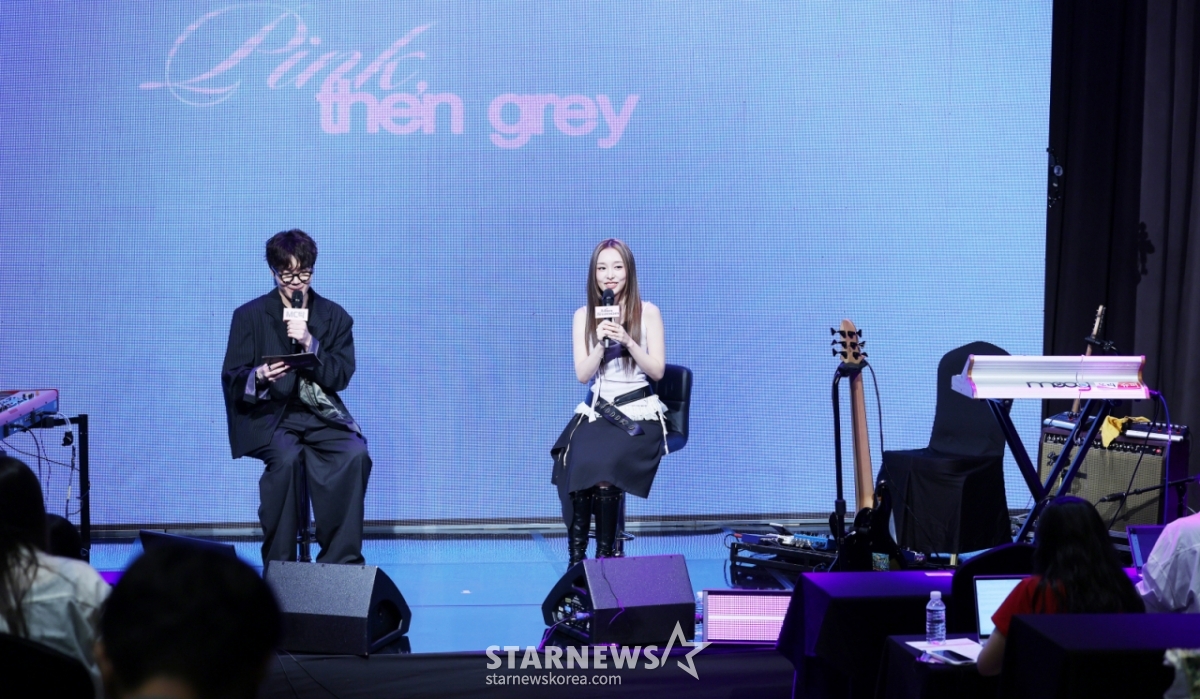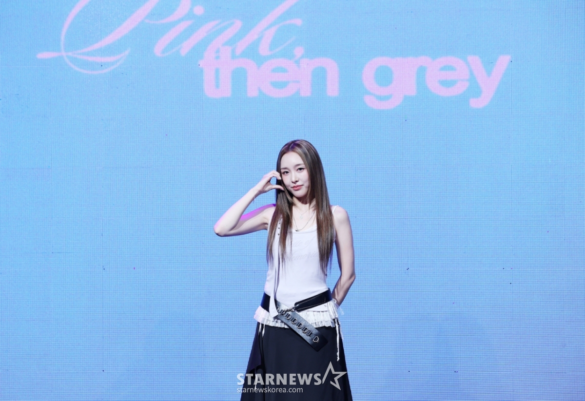 민지운은 21일 오후 서울 강남구 청담CGV에서 첫 EP 앨범 '핑크 덴 그레이(Pink, then grey)' 발매 기념 미디어 쇼케이스를 개최했다.