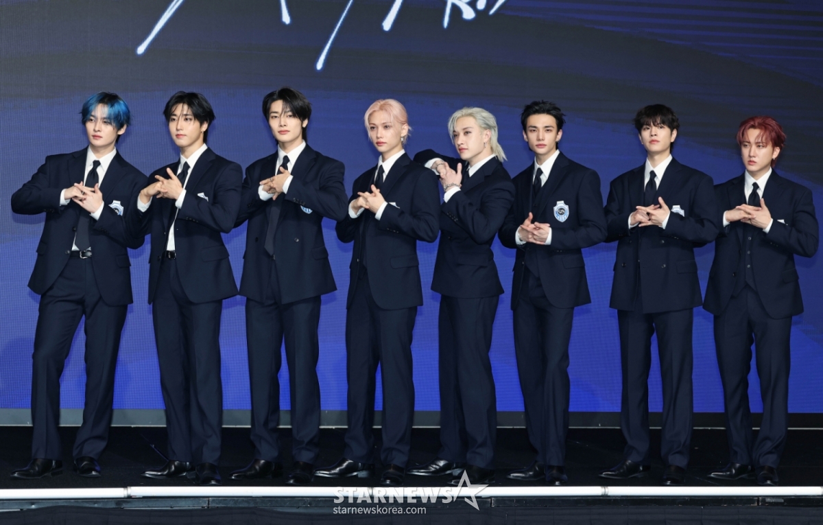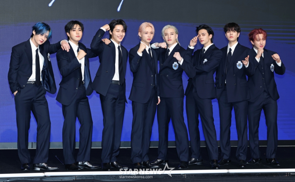 스트레이 키즈(방찬, 리노, 창빈, 현진, 한, 필릭스, 승민, 아이엔)는 22일 오후 서울 영등포구 여의도동 콘래드 서울에서 네 번째 정규앨범 '카르마(KARMA)' 발매 기념 기자간담회를 개최했다.