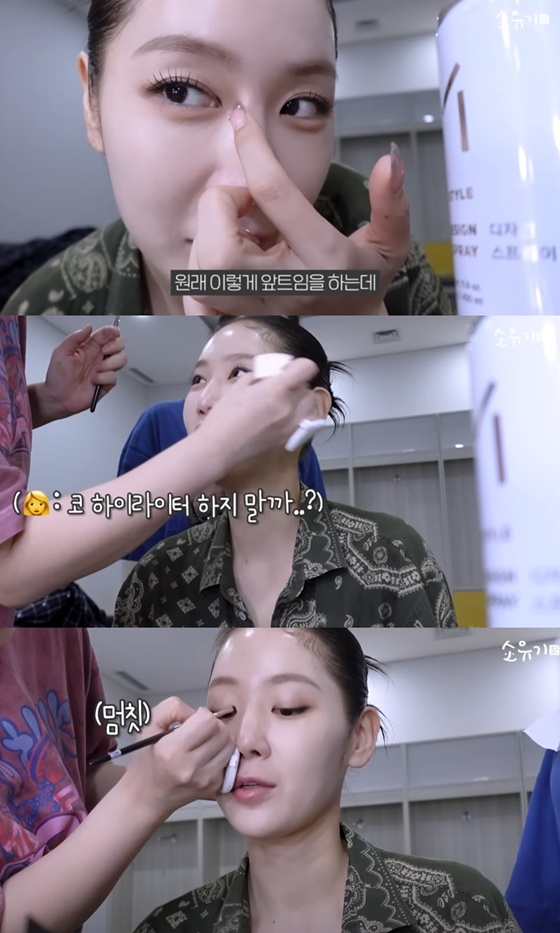 그러면서 "원래 이렇게 (메이크업으로) 앞트임을 한다. '코 하이라이터 하지 말까?', '앞트임 하지 말까?' 하고 물어본다. 그럼 '하던 대로 해라. 괜찮다'라고 한다"고 웃었다.