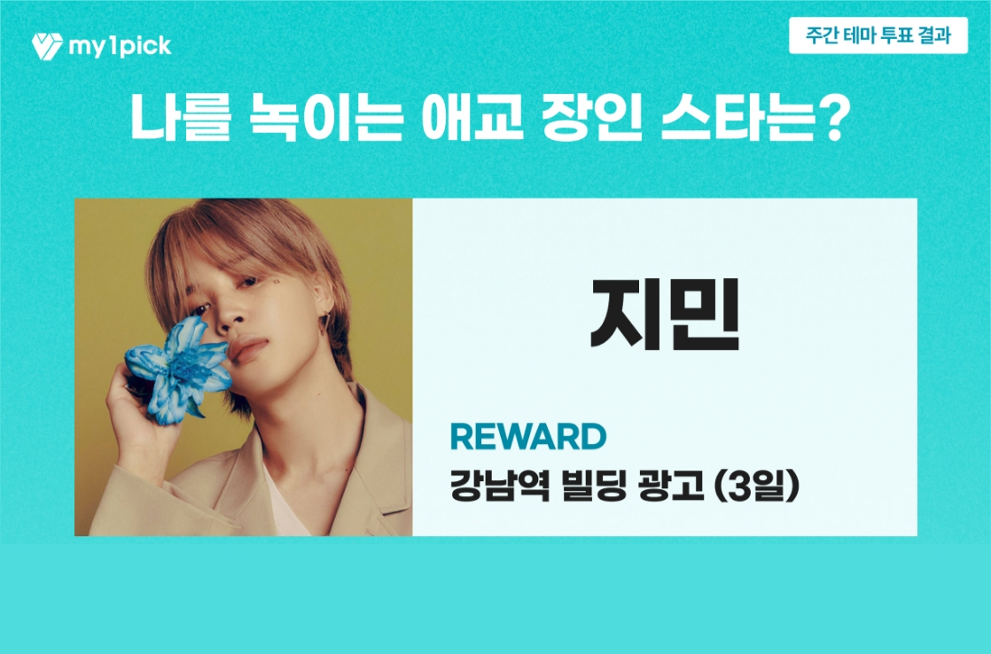 한편 마이원픽 투표 결과에 따른 지민의 광고는 강남역 대형 전광판에서 만나볼 수 있다.