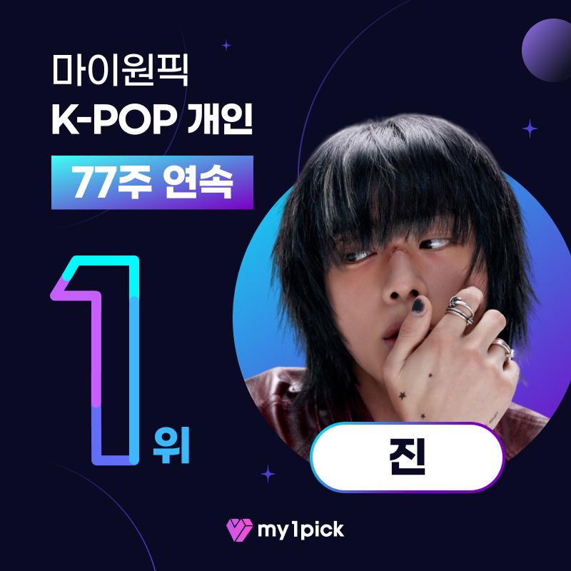 방탄소년단(BTS) 진이 마이원픽(MY1PICK) 주간랭킹에서 독보적인 기록을 세우며 막강한 인기를 빛냈다.