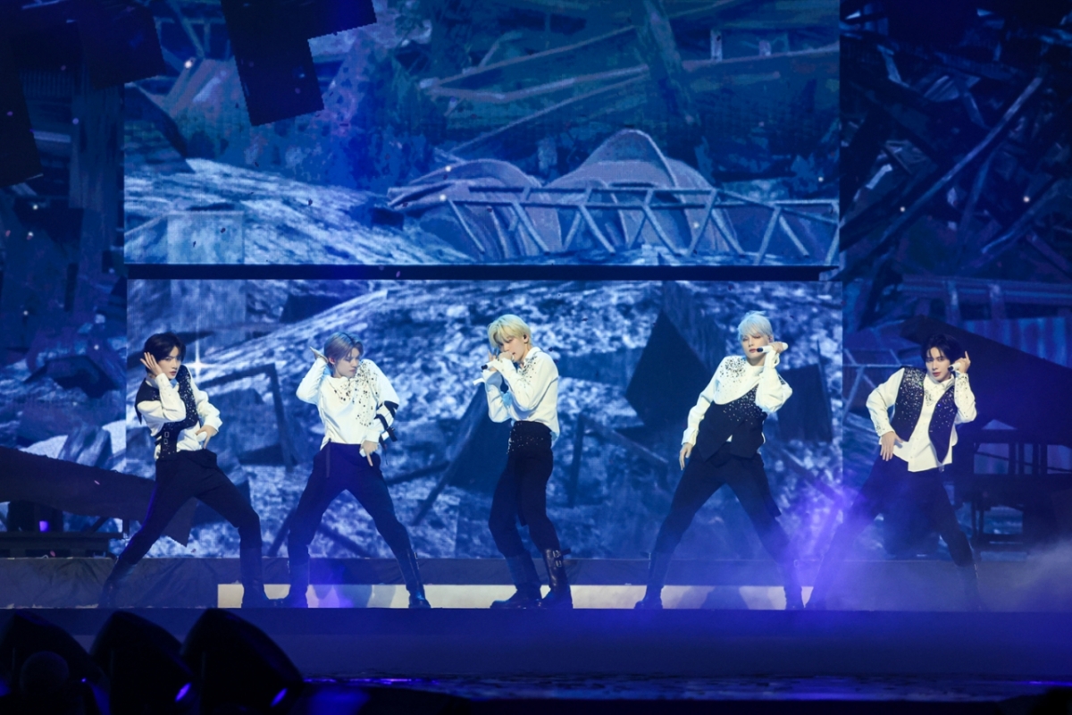 압도적인 연출은 공연에 재미를 더했다. 거대한 LED 타워와 용 형상의 조형물이 세트가 무너지는 듯한 장면을 만들어냈다. 이어 펼쳐진 푸른 숲은 황홀경을 선사했다. 여기에 향기를 입힌 컨페티가 객석에 흩날려 시각과 청각을 넘어 후각까지 자극하는 특별한 공연을 완성했다. 다섯 소년이 약속했던 내일을 향해 함께 나아간다는 서사와 몰입감 있는 연출, 압도적인 라이브 퍼포먼스의 조화는 '스테이지텔러'(스테이지와 스토리텔러의 합성어)라는 수식어에 걸맞았다.