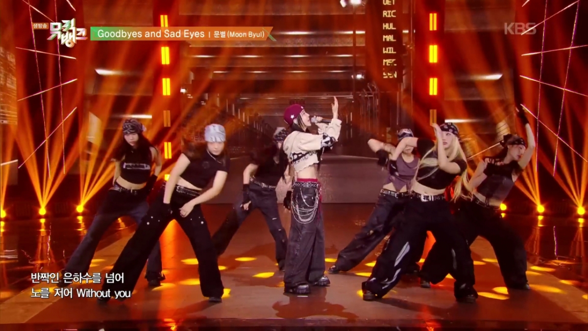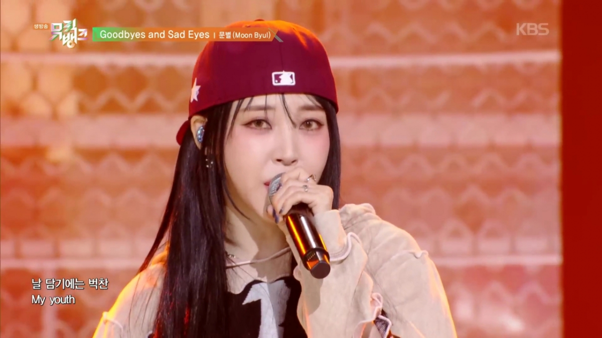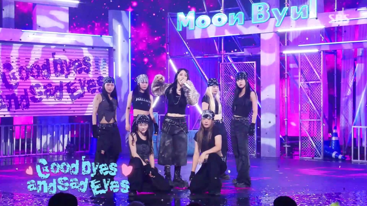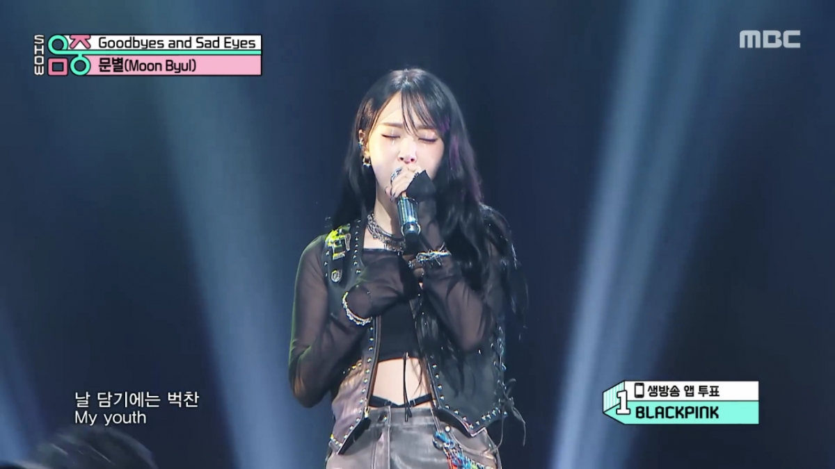 매 무대 문별은 강렬하면서도 파워풀한 퍼포먼스로 무대 몰입도를 극대화했다. '완벽한 Goodbye'에서 실제 인사를 하듯 손을 흔든 뒤, 'Don't give me those sad eyes'에 맞춰 눈에서 흐르는 눈물을 표현한 키치한 포인트 안무가 인상적이다.