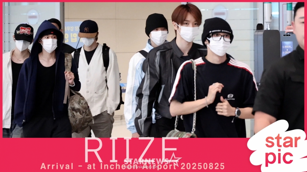 연예K-POP라이즈 '잘 다녀왔어요'[★포토]발행 : 2025.08.25 ・ 12:28인천국제공항=임성균 기자그룹 라이즈(RIIZE) 쇼타로, 은석, 성찬, 원빈, 소희, 앤톤이 해외 일정을 마치고 25일 오후 인천국제공항을 통해 입국하고 있다. 2025.08.25<저작권자 © 스타뉴스, 무단전재 및 재배포 금지>공항패션입국라이즈쇼타로성찬은석추천 기사임성균 기자기자홈좋아요 연예-K-POP의 인기 급상승 뉴스연예-K-POP의 최신 뉴스