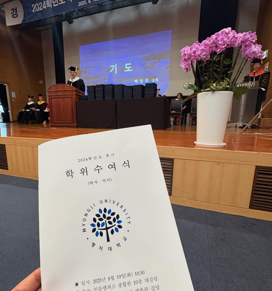 강원래는 지난 23일 명지대학교 청소년지도학 박사학위과정을 이수하고 학위기를 받는 모습을 공개했다.