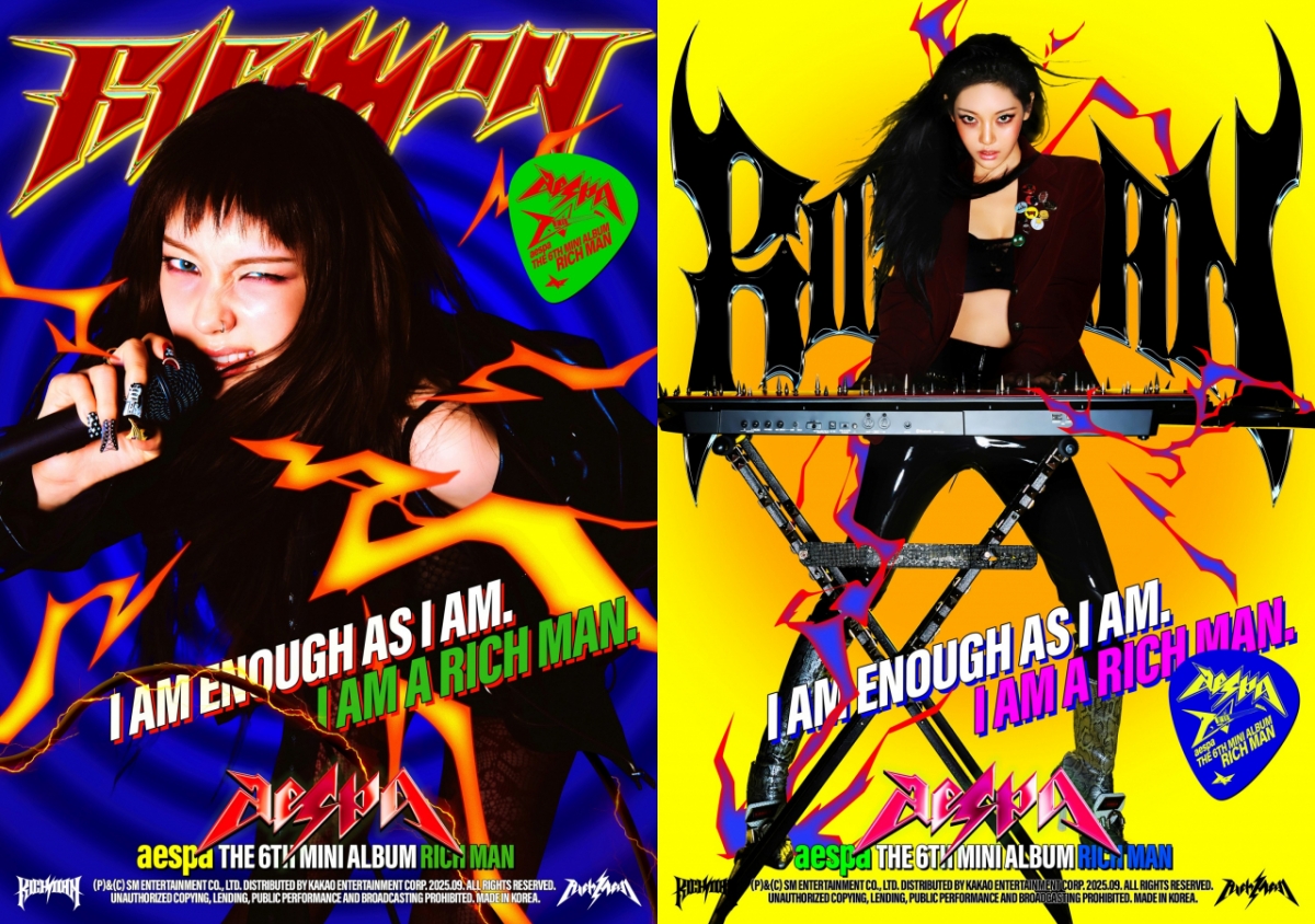 더불어 26일 0시 공식 SNS 채널을 통해 오픈된 'Rich Man' 티저 이미지에는 각각 마이크와 드럼, 신디사이저를 다루며 강렬한 '쇠 맛' 매력의 밴드 멤버로 변신한 카리나와 닝닝의 모습이 담겨있어, 이목을 집중시켰다.