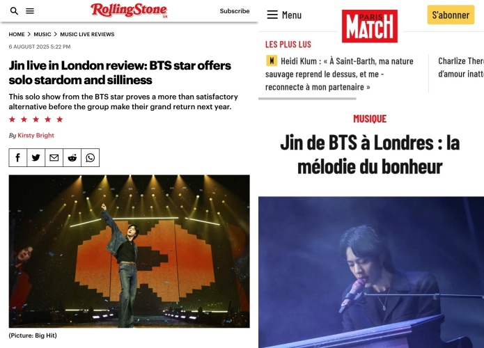 매체는 "그의 매력을 온전히 보여주지 못하는 것은 죄악"이라는 강렬한 단언과 함께 진의 보컬과 퍼포먼스에 대한 찬사를 아끼지 않았다. 또한 "세계를 정복한 공연자처럼 세련된 모습으로 무대에 섰고, 혼자서도 스포트라이트를 받을 준비가 되었다"며 지지를 보냈다. 나아가 결론부에서는 "그는 천재다. 천재 그 자체다"라는 직설적 표현을 남겼다.