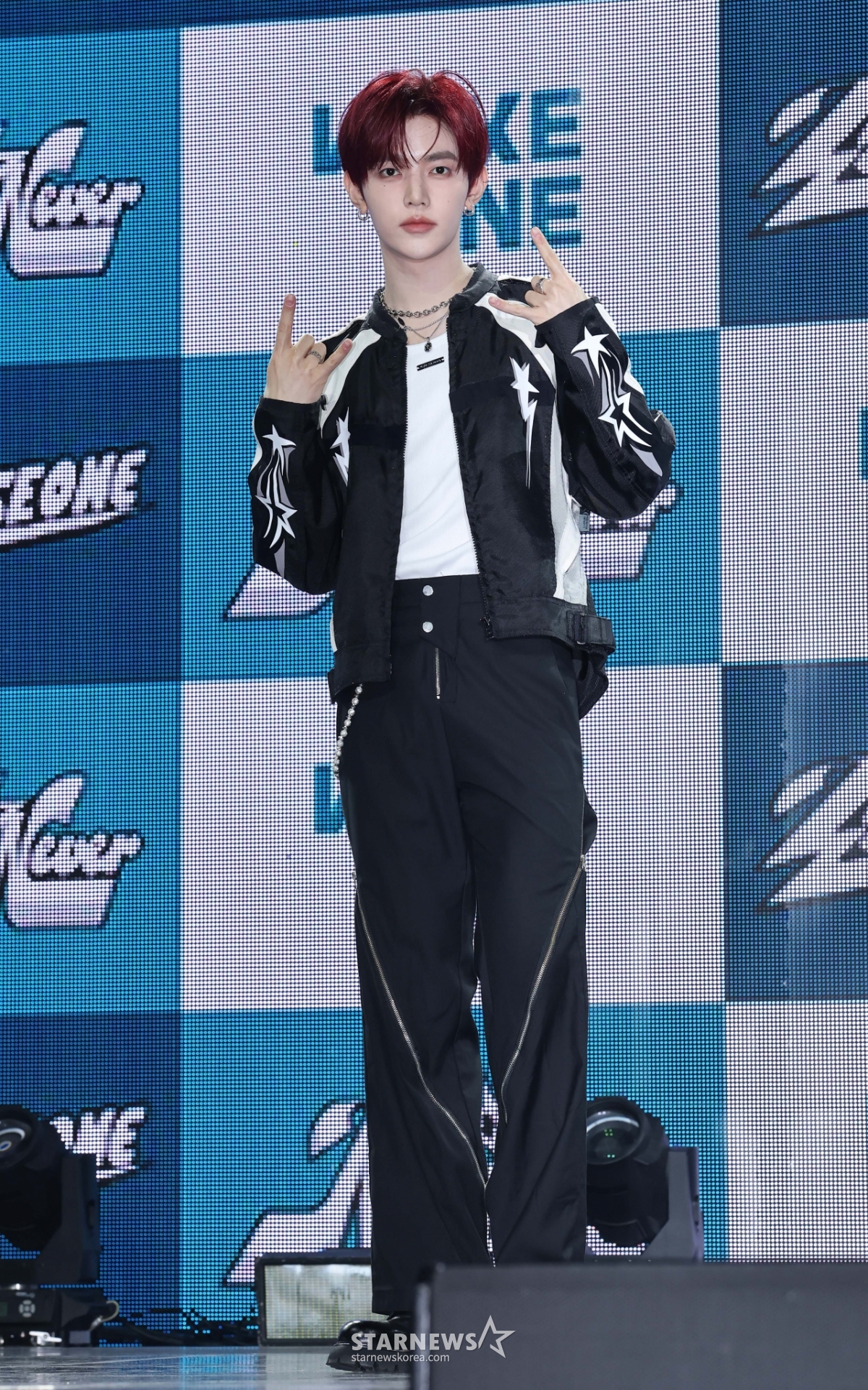 그룹 제로베이스원(ZEROBASEONE) 장하오가 1일 오후 서울 용산구 블루스퀘어에서 진행된 정규 1집 '네버 세이 네버'(NEVER SAY NEVER) 발매기념 쇼케이스에서 포즈를 취하고 있다.