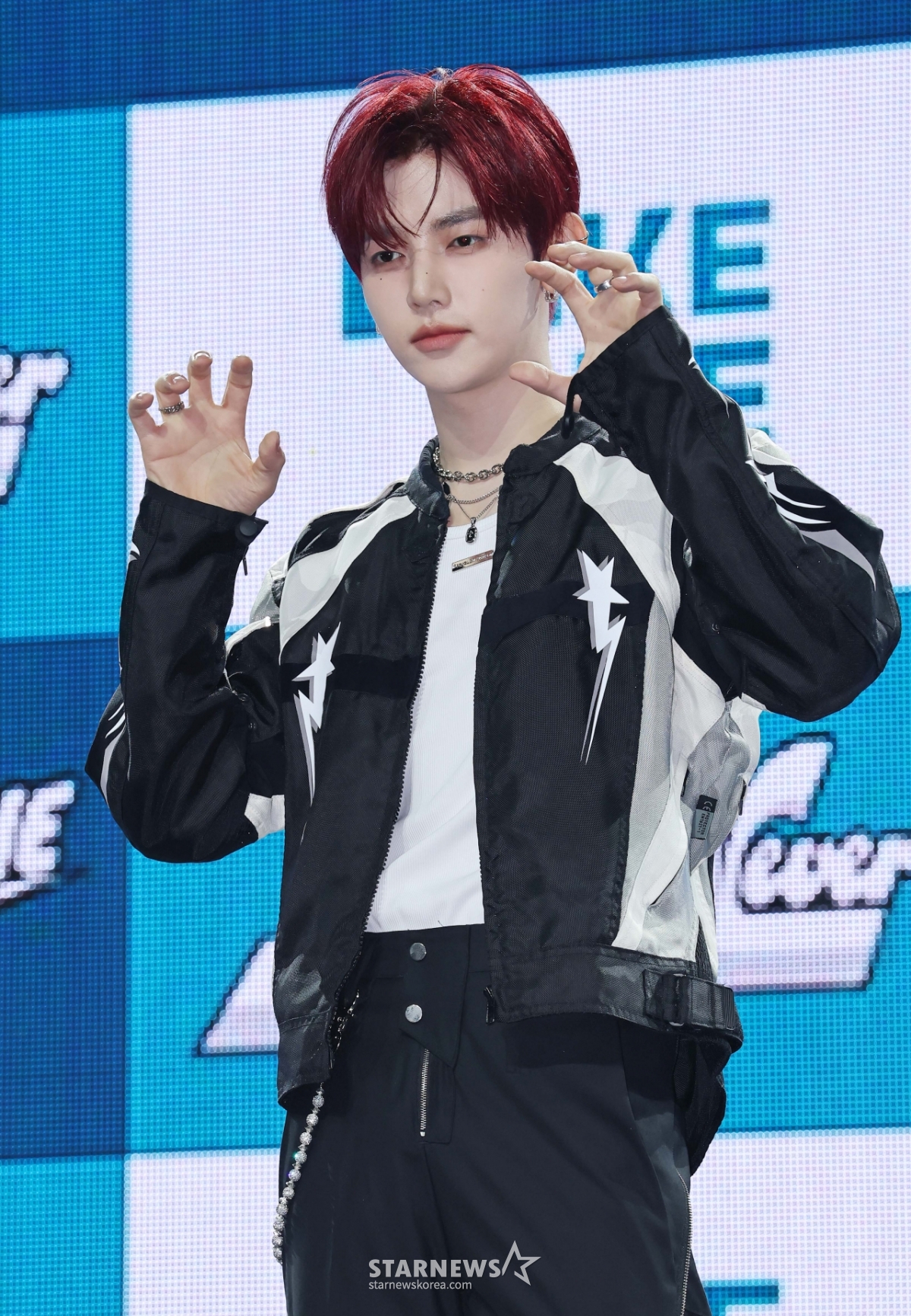 그룹 제로베이스원(ZEROBASEONE) 장하오가 1일 오후 서울 용산구 블루스퀘어에서 진행된 정규 1집 '네버 세이 네버'(NEVER SAY NEVER) 발매기념 쇼케이스에서 포즈를 취하고 있다.