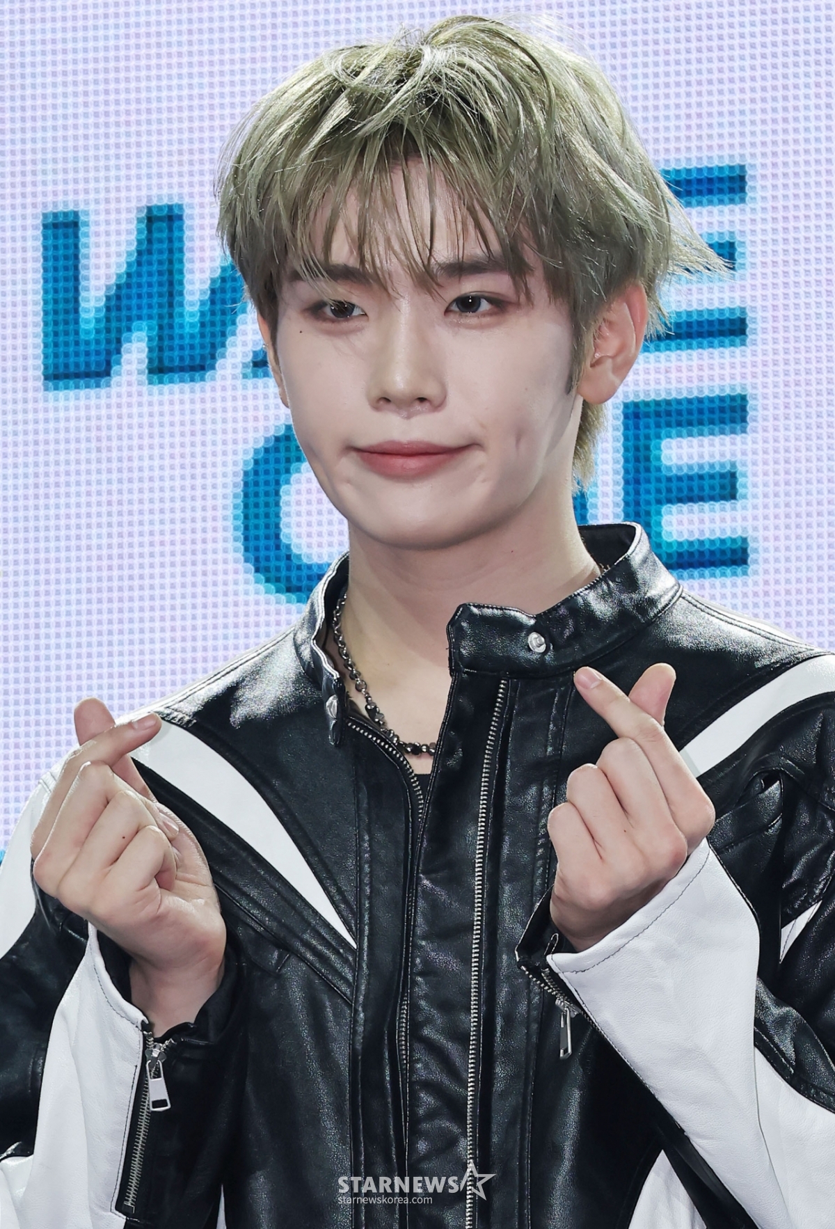 그룹 제로베이스원(ZEROBASEONE) 김태래가 1일 오후 서울 용산구 블루스퀘어에서 진행된 정규 1집 '네버 세이 네버'(NEVER SAY NEVER) 발매기념 쇼케이스에서 포즈를 취하고 있다.