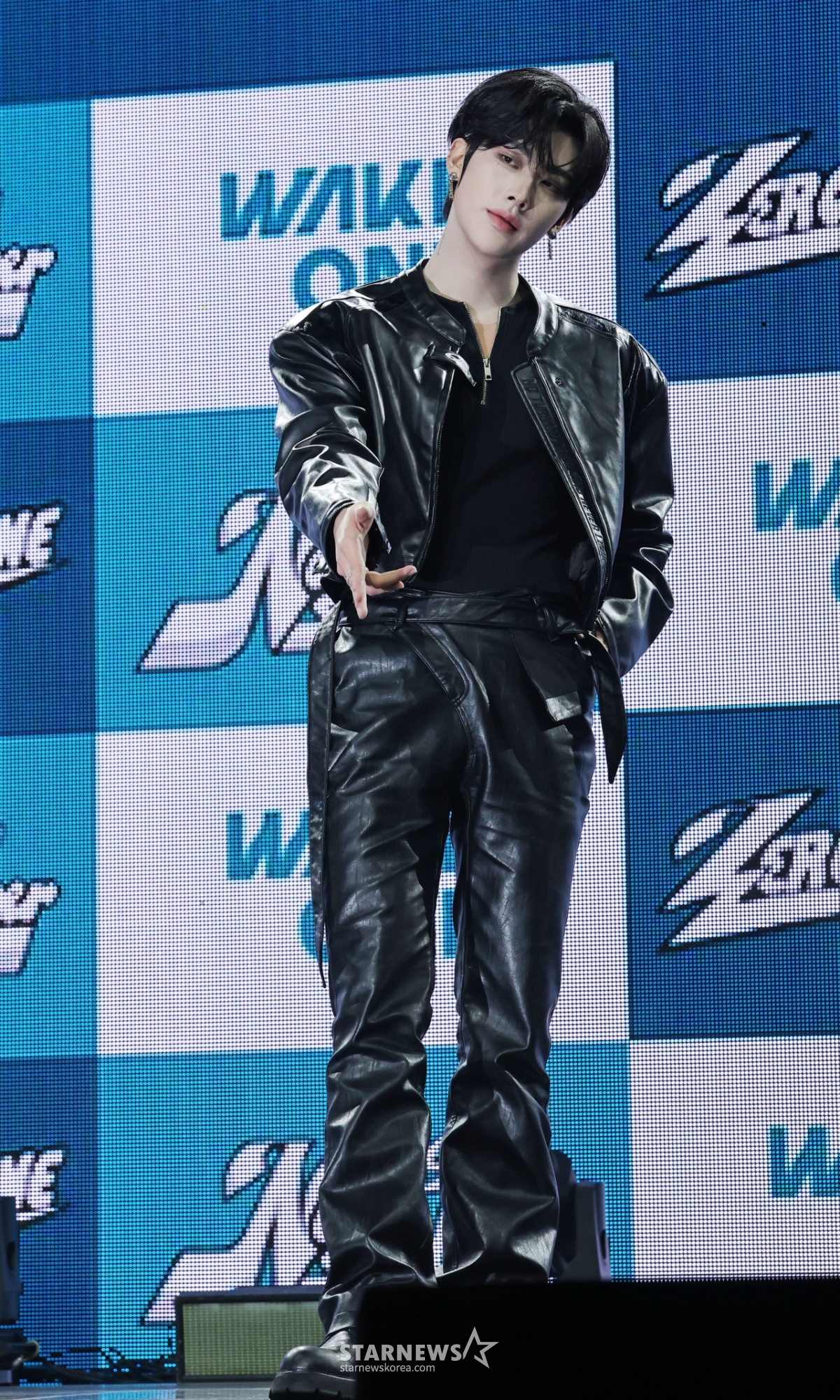 그룹 제로베이스원(ZEROBASEONE) 리키가 1일 오후 서울 용산구 블루스퀘어에서 진행된 정규 1집 '네버 세이 네버'(NEVER SAY NEVER) 발매기념 쇼케이스에서 포즈를 취하고 있다.