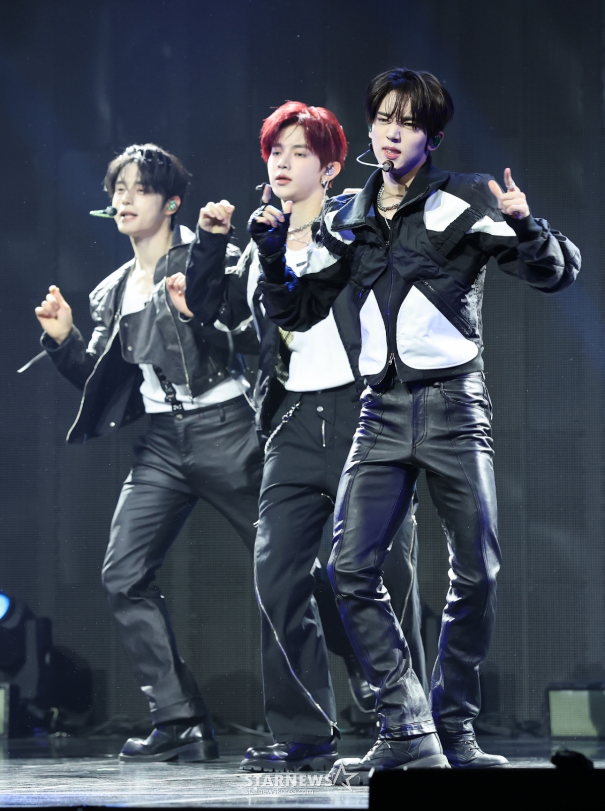 그룹 제로베이스원(ZEROBASEONE)이 1일 오후 서울 용산구 블루스퀘어에서 진행된 정규 1집 '네버 세이 네버'(NEVER SAY NEVER) 발매기념 쇼케이스에서 신곡을 선보이고 있다.