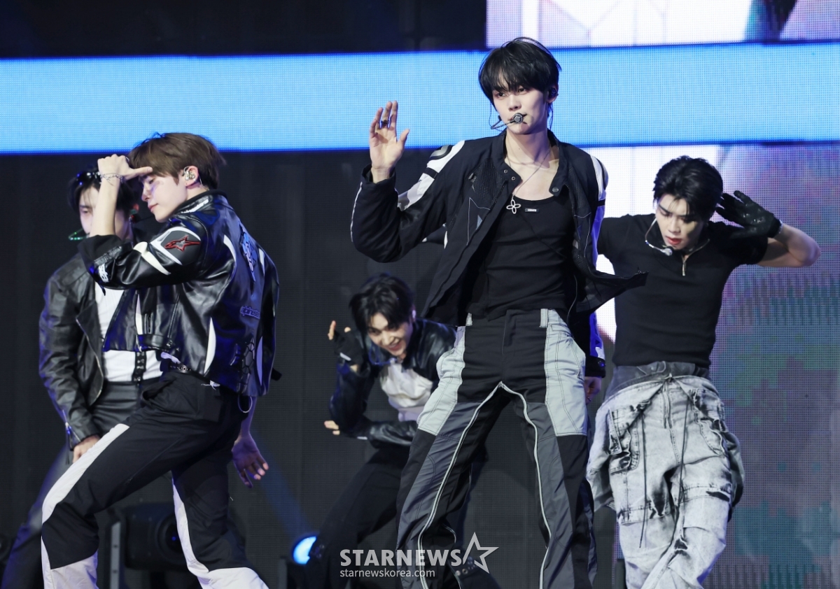 그룹 제로베이스원(ZEROBASEONE)이 1일 오후 서울 용산구 블루스퀘어에서 진행된 정규 1집 '네버 세이 네버'(NEVER SAY NEVER) 발매기념 쇼케이스에서 신곡을 선보이고 있다.