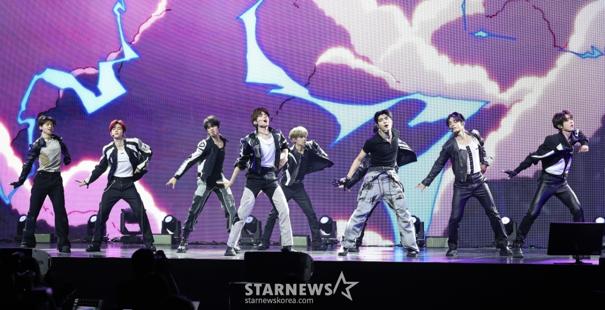그룹 제로베이스원(ZEROBASEONE)이 1일 오후 서울 용산구 블루스퀘어에서 진행된 정규 1집 '네버 세이 네버'(NEVER SAY NEVER) 발매기념 쇼케이스에서 신곡을 선보이고 있다.
