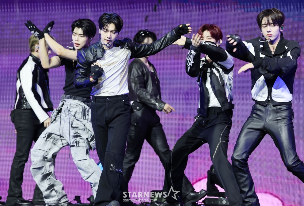 그룹 제로베이스원(ZEROBASEONE)이 1일 오후 서울 용산구 블루스퀘어에서 진행된 정규 1집 '네버 세이 네버'(NEVER SAY NEVER) 발매기념 쇼케이스에서 신곡을 선보이고 있다.