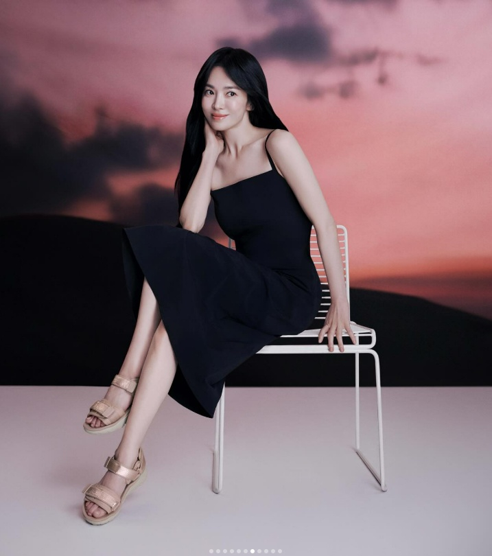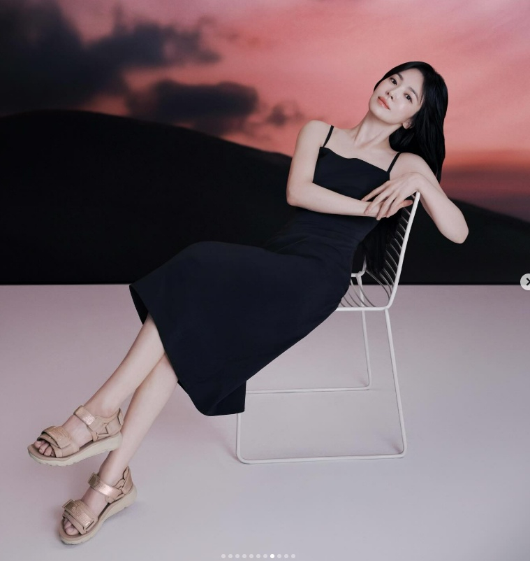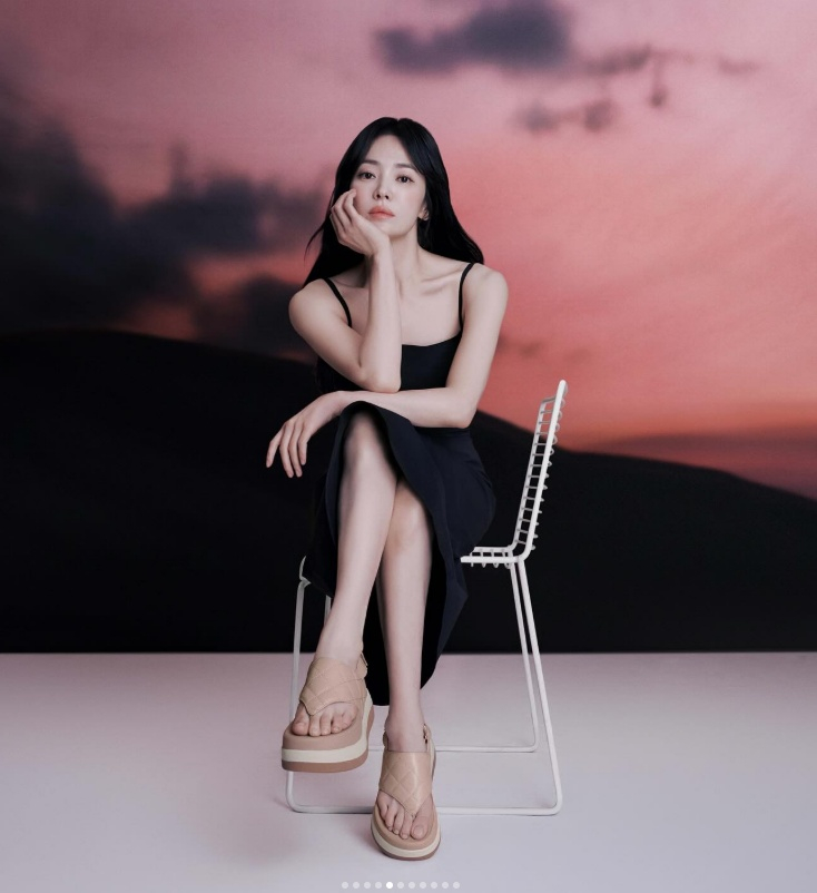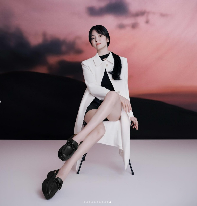 송혜교는 2일 자신의 계정에 신발 브랜드 광고 모델로 참여한 화보 사진을 공개했다.