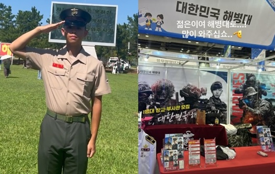 공개된 사진 속에는 경기 고양 킨텍스에서 열리는 취·창박람회 현장이 담겼다. 그는 해병대 부스를 찍으며 홍보에 나섰다.