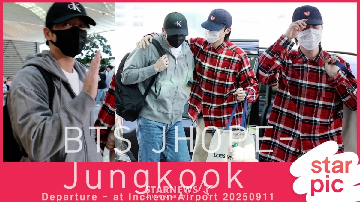 연예K-POPBTS 제이홉-정국 '정다운 투샷!' [★영상]발행 : 2025.09.11 ・ 09:36인천국제공항=임성균 기자그룹 방탄소년단 제이홉, 정국이 해외 일정 차 11일 오후 인천국제공항을 통해 출국하고 있다. 2025.00.11<저작권자 © 스타뉴스, 무단전재 및 재배포 금지>공항패션출국방탄소년단BTS정국전정국추천 기사임성균 기자기자홈좋아요 연예-K-POP의 인기 급상승 뉴스연예-K-POP의 최신 뉴스