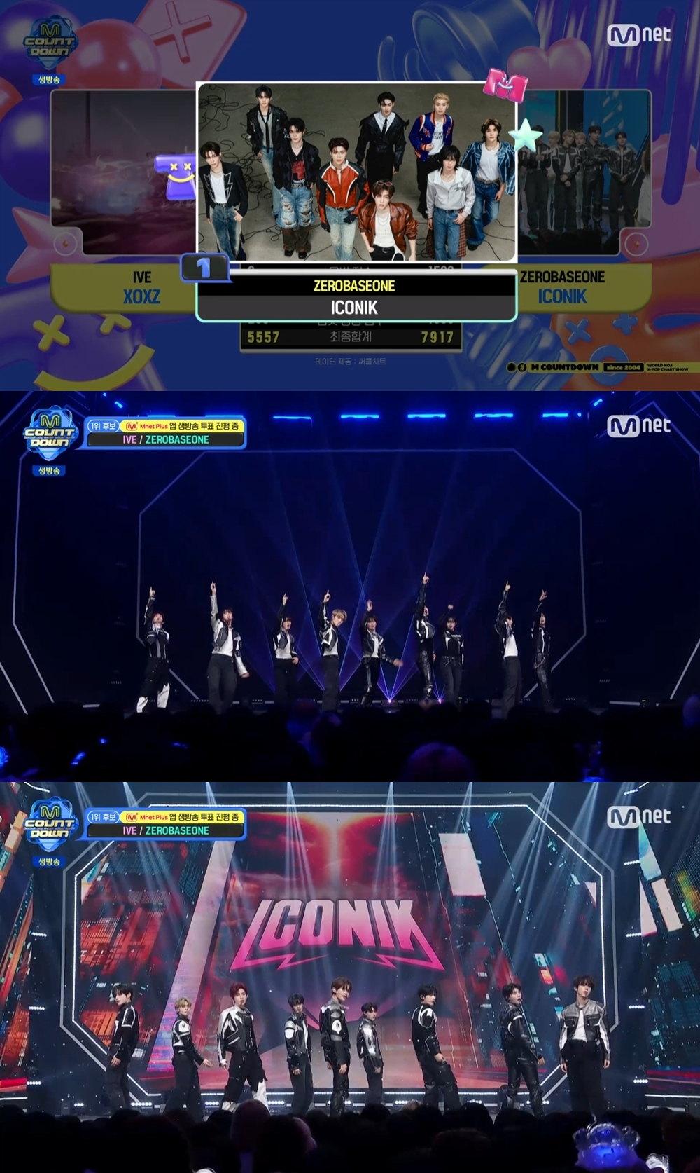 제로베이스원(성한빈, 김지웅, 장하오, 석매튜, 김태래, 리키, 김규빈, 박건욱, 한유진)은 지난 11일 방송된 Mnet '엠카운트다운'에서 정규 1집 '네버 세이 네버(NEVER SAY NEVER)'의 타이틀곡 '아이코닉(ICONIK)'으로 1위에 올랐다.