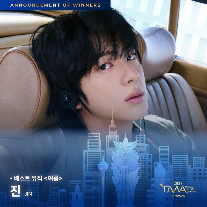 진은 지난 20일(한국 시간) 마카오에서 열린 '2025 더팩트 뮤직 어워즈(THE FACT MUSIC AWARDS, TMA)'에서 팬앤스타 초이스 솔로(FAN N STAR Choice Awards SOLO) 부문 1위를 수상했다.