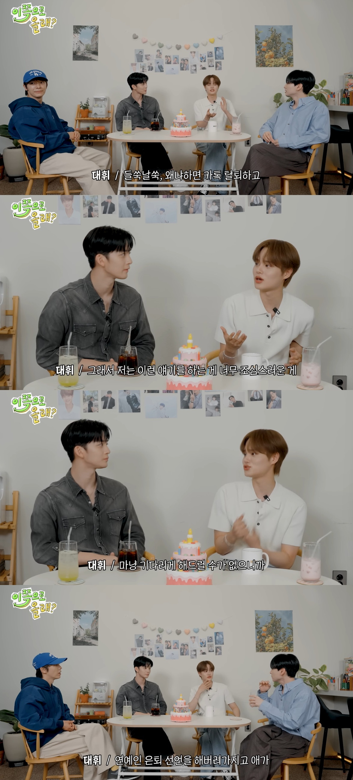 동해는 "워너원 단톡방이 있는데 전원이 있는지 궁금해하더라"고 묻자, 이대휘는 "다 있다. 성운이 형, 민현이 형이 말 많다"라고 답했다. 배진영은 "난 조용히 보기만 한다. 동생들은 중간에 끼면 화살이 나한테 쏠려서 공격받는다"라고 말해 웃음을 자아냈다.
