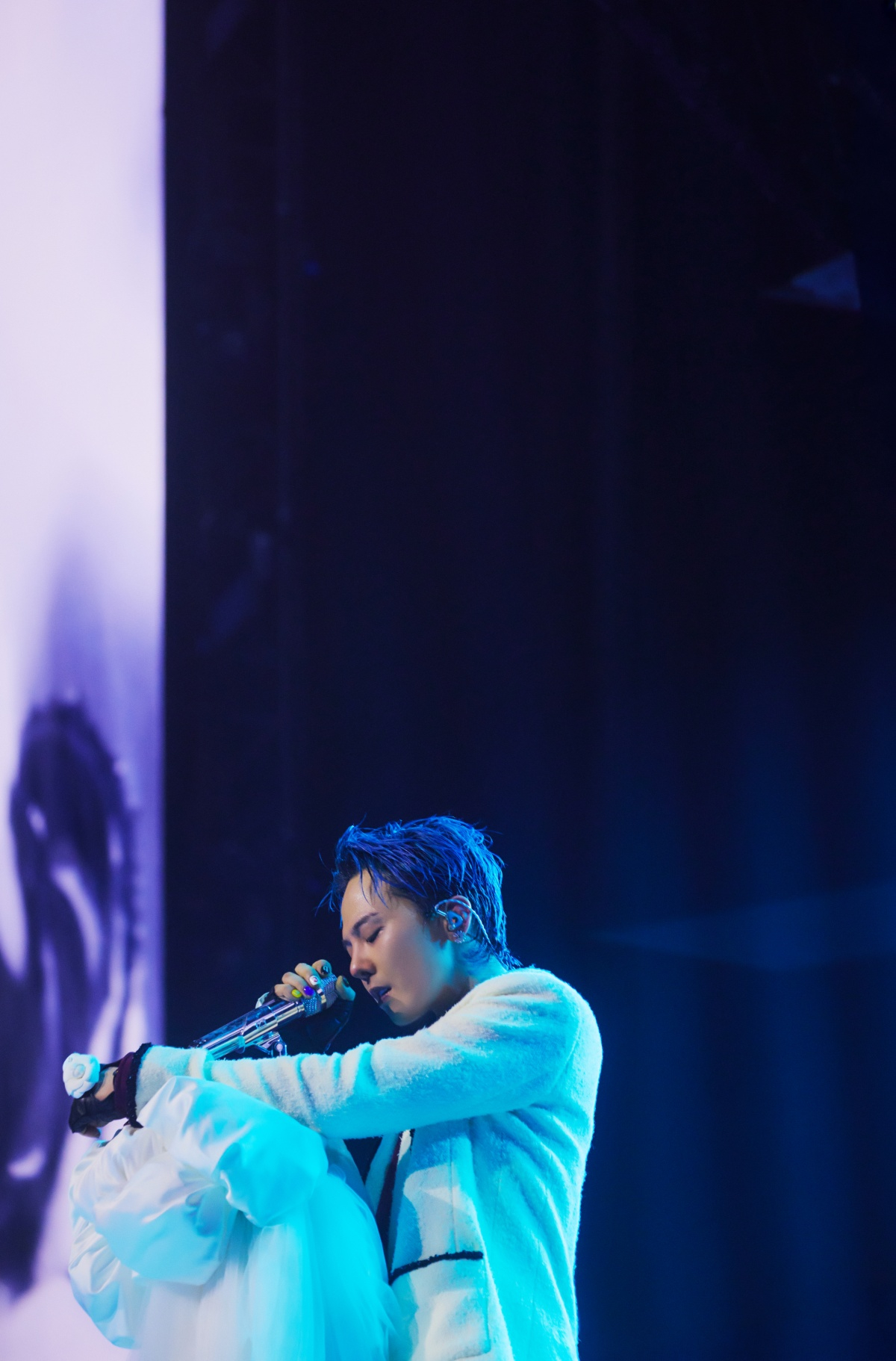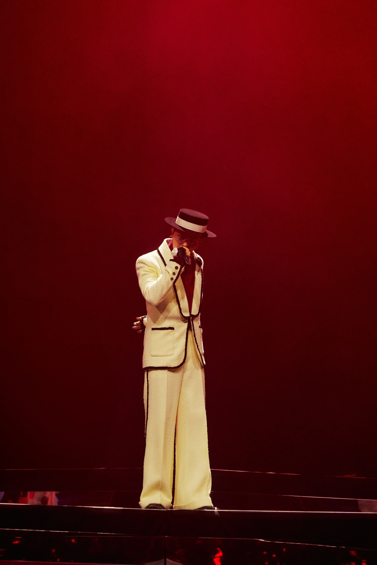 이날 지드래곤은 블랙 크리스탈 자수 브레이드 장식이 더해진 오프 화이트 컬러의 울 팬츠 수트에 크림슨 컬러의 실크 크레이프 셔츠를 매치하며 한층 강렬하고 세련된 무드를 연출했다. 샤넬 하우스만의 정교한 테일러링과 지드래곤 특유의 카리스마가 어우러져 무대 위에서 빛나는 시너지를 선보인 것이다.