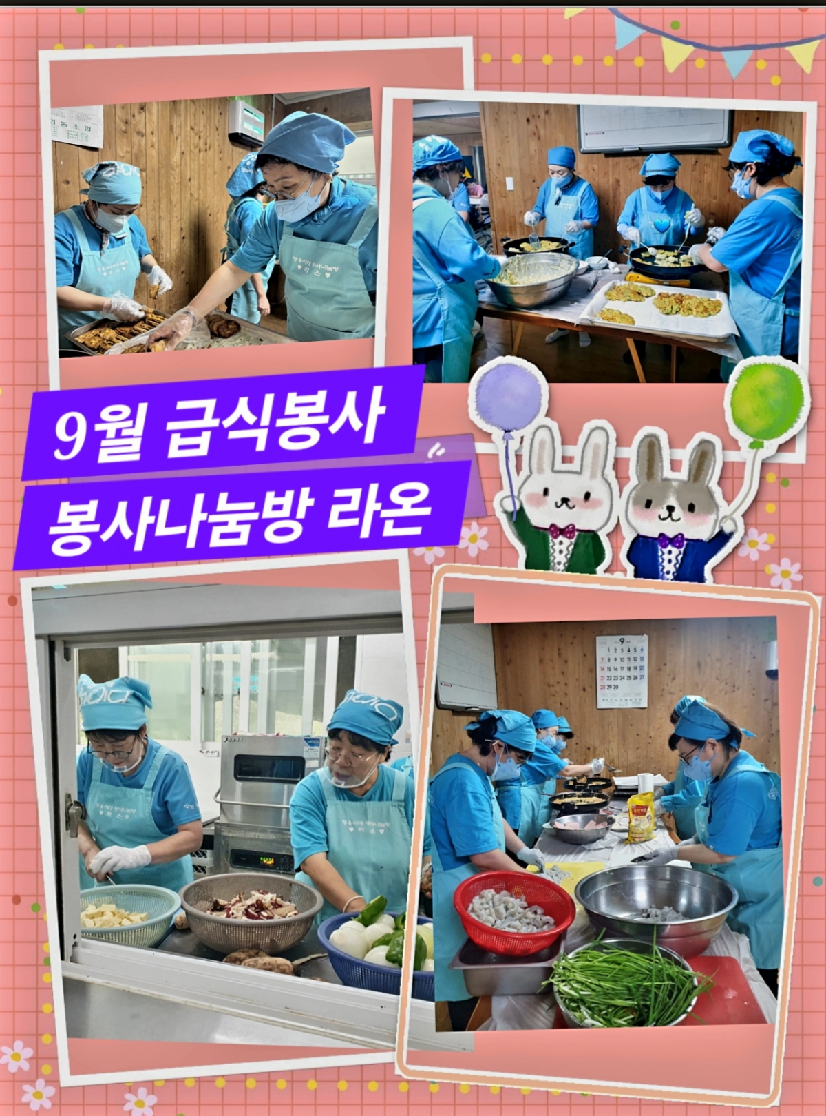 '라온'은 "짧은 시간에 양념돼지 숯불구이를 하고 국을 끓이고, 손이 많이 가는 잡채를 준비하고, 전을 부치고 고구마와 연근을 튀긴 맛탕과 과일샐러드 등 많은 음식을 조리하느라 정신없이 바빴지만, 회원들이 숙달된 솜씨로 정성을 다해 시간 안에 배식을 할 수 있었고 맛나게 먹고 기분 좋게 행사장으로 출발하는 원생들을 배웅하며 뿌듯했다"고 전했다.