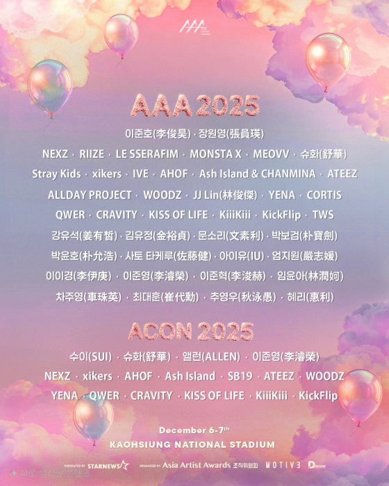 '아시아 아티스트 어워즈'(Asia Artist Awards, AAA)는 글로벌 넘버 원(NO.1) 시상식이다. 올해로 10회째를 맞이했으며 오는 12월 6일 가오슝 내셔널 스타디움에서 '10주년 아시아 아티스트 어워즈 2025(10th Anniversary Asia Artist Awards 2025, '10주년 AAA 2025')'서 열린다. 2PM 이준호와 아이브 장원영이 MC를 맡았다.