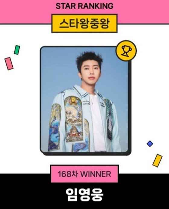 임영웅은 지난 19일 오후 3시 1분부터 26일 오후 3시까지 진행된 168차 스타왕중왕 랭킹 투표에서 29만 4806표를 획득하며 1에 올랐다. 이로써 임영웅은 무려 168주 연속 1위라는 기염을 토했다.