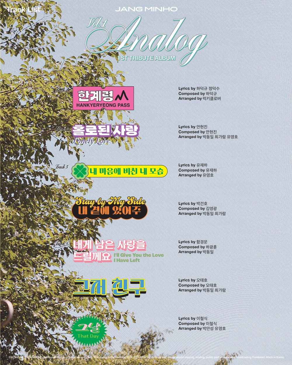 장민호는 최근 공식 SNS를 통해 새 미니앨범 'Analog vol.1(아날로그 볼륨 1)'의 트랙리스트 이미지를 공개했다.
