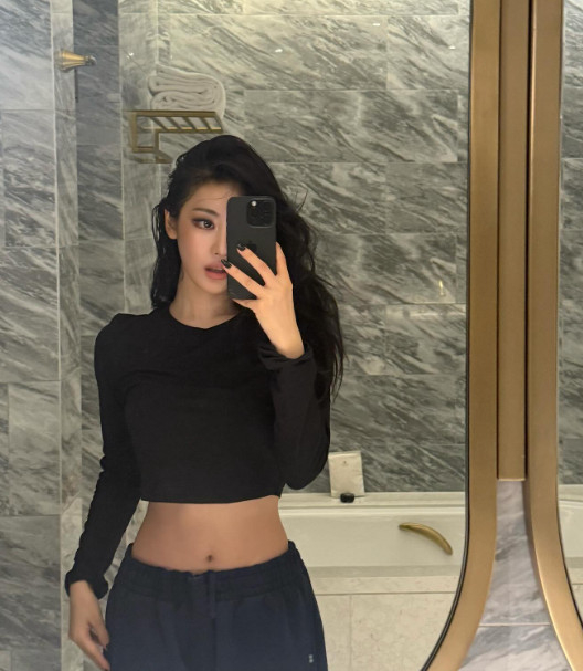 그룹 에스파 멤버 닝닝이 명품 허리 라인을 뽐냈다.