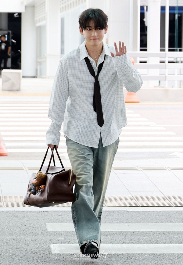 뷔는 7일 파리 패션위크를 마치고 인천공항으로 귀국하면서 셀린느 캐시미어 카디건 재킷, 울 개버딘 클래식 팬츠, 블루 스카프, 드럭스토어 첼시 부츠, 브라운 스마일링 핸드백으로 공항 패션을 완성했다. 이 중 블랙 카디건 재킷은 그가 공항에 나타난 직후 셀린느 온라인 스토어에서 완판된 것으로 알려졌다.