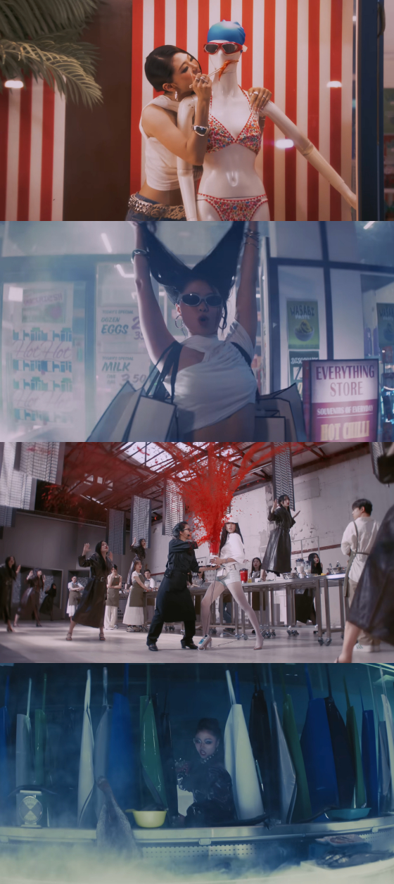 가사와 맞물리는 뮤직비디오 장면들은 이후로도 괴짜 같다. 마트에 들어선 영빈은 진열된 구강 청결제를 냅다 입에 들이붓거나 태닝 기계에서 나와 돌연 가운을 벗는다. 사람들이 말리고 경찰이 출동해도 영빈의 괴짜력은 멈출 줄 모른다.