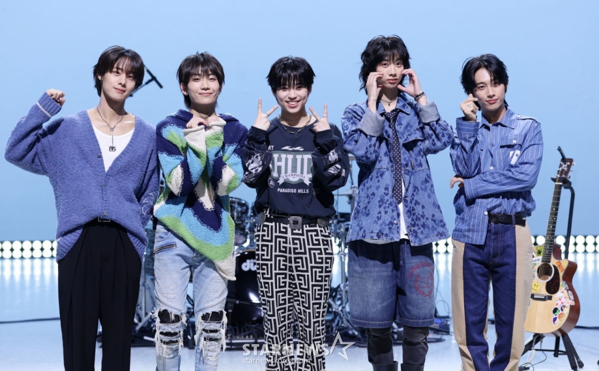 밴드 하이파이유니콘이 13일 서울 마포구 상암동 MBC 공개홀에서 열린 Hi-Fi Un!corn(하이파이유니콘) Single Album 'Teenage Blue' 발매 쇼케이스에 참석해 포즈를 취하고 있다. /2025.10.13 /사진=김휘선 hwijpg@