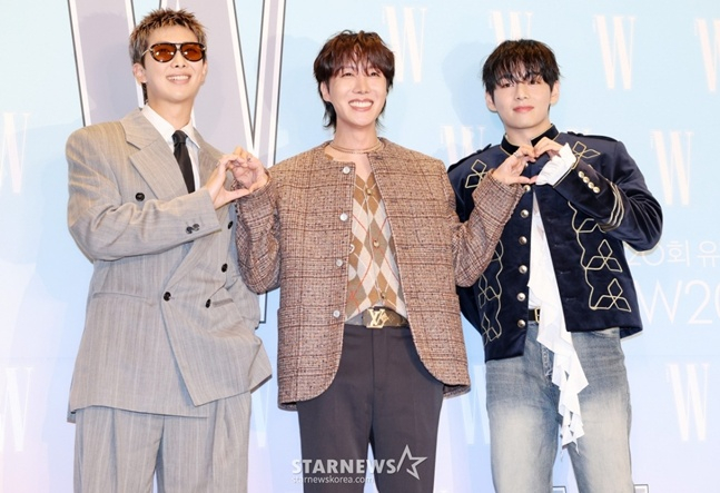 그룹 방탄소년단(BTS) 멤버 RM, 제이홉, 뷔(본명 김태형)가 15일 더블유 코리아(W KOREA)가 주최한 '러브 유어 W(Love Your W)' 유방암 인식 개선 캠페인 행사에 나란히 참석해 화제를 모았다.