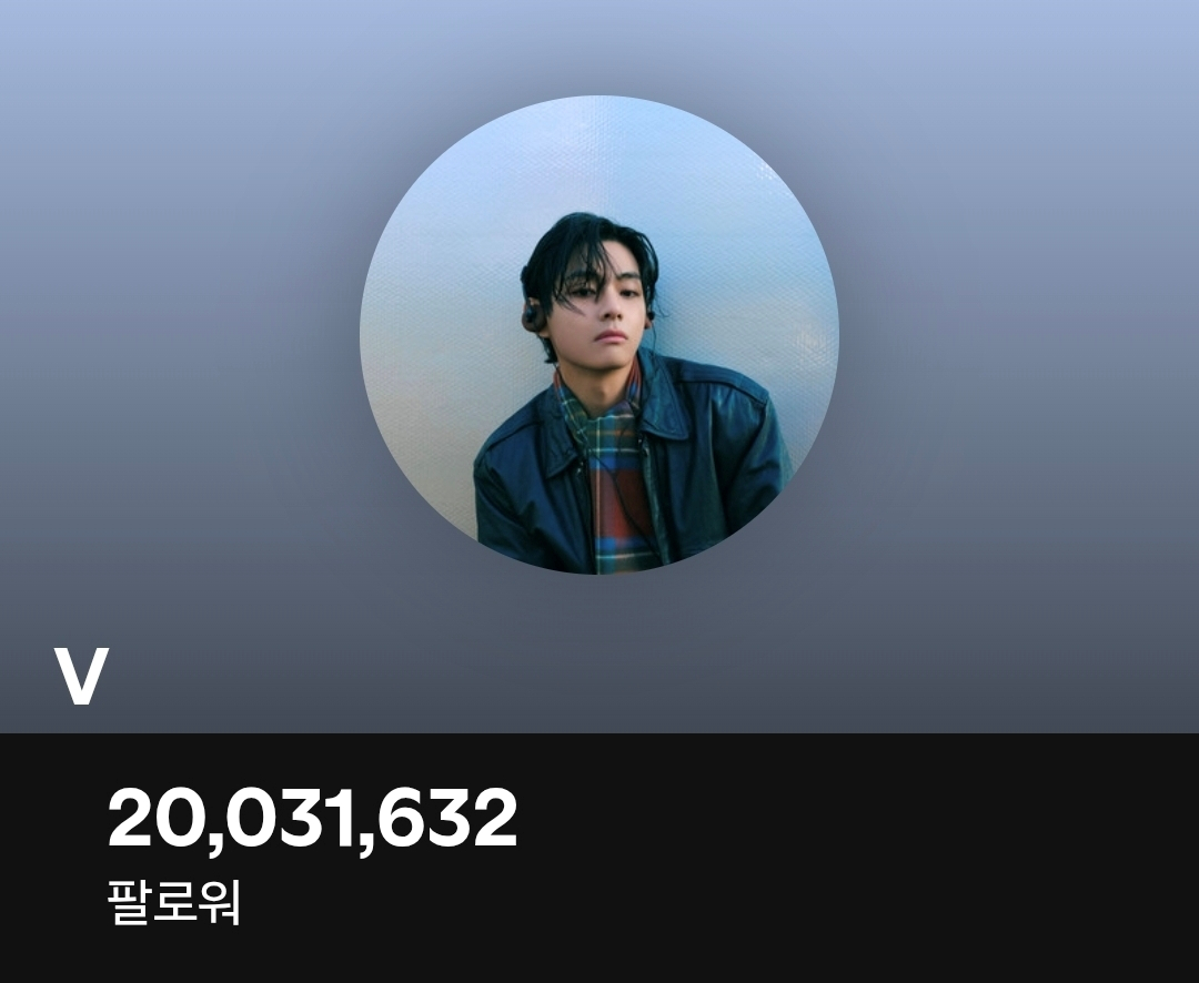방탄소년단(BTS) 뷔가 세계 최대 음원 플랫폼 스포티파이(Spotify) 팔로워 2000만 명을 돌파하여 K팝 솔로아티스트 1위를 기록했다.