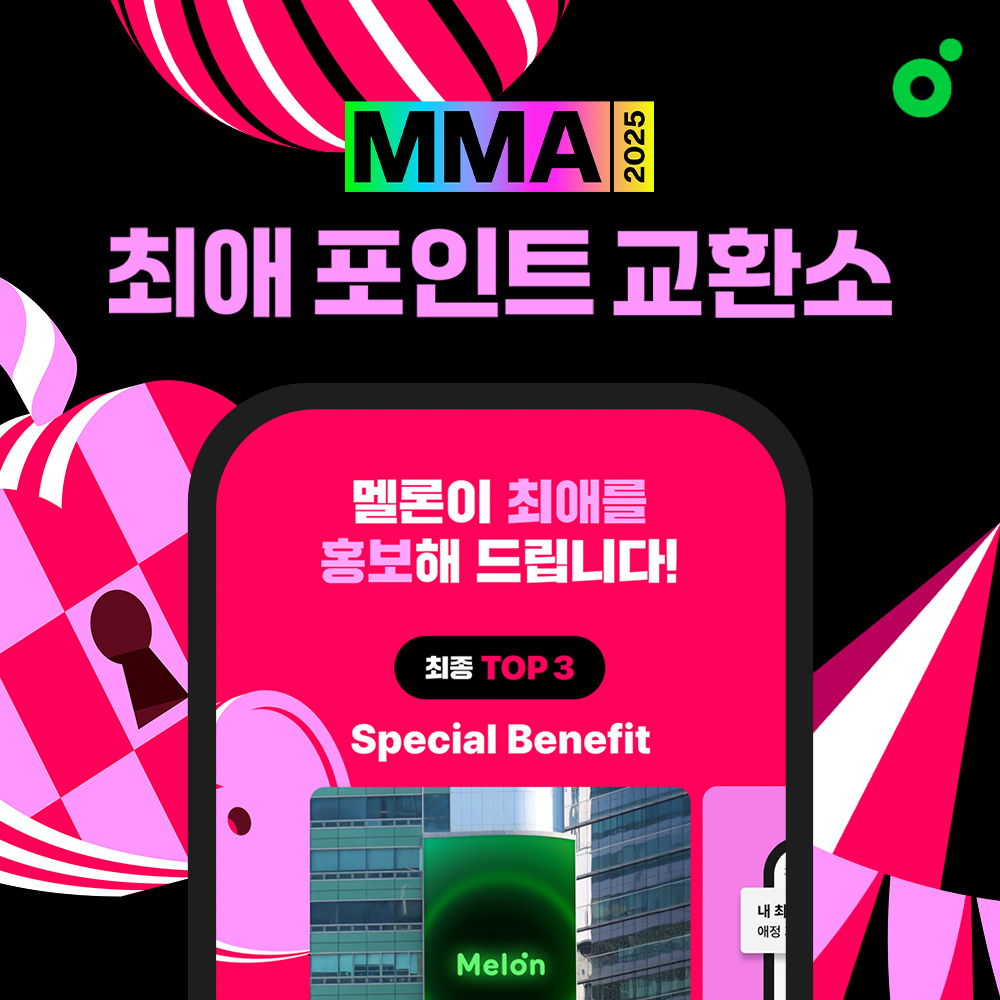 카카오엔터테인먼트의 뮤직플랫폼 멜론(Melon)은 오는 12월 20일(토) 서울 고척스카이돔에서 열리는 'The 17th Melon Music Awards(멜론뮤직어워드 2025, MMA2025)'의 사전행사로 내가 좋아하는 아티스트의 매력을 널리 뽐내는 '최애 포인트 교환소' 이벤트를 이달 31일까지 진행한다고 밝혔다.