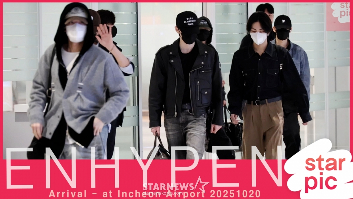연예K-POP엔하이픈 '수고많았어요!' [★영상]발행 : 2025.10.20 ・ 09:25조회수 :인천국제공항=임성균 기자그룹 엔하이픈(ENHYPEN) 정원, 선우, 희승, 제이크, 성훈, 제이, 니키가 해외 일정을 마치고 20일 오전 인천공항을 통해 입국하고 있다. 2025.10.20<저작권자 © 스타뉴스, 무단전재 및 재배포 금지>브리핑추천 기사임성균 기자기자홈좋아요연예-K-POP의 인기 급상승 뉴스연예-K-POP의 최신 뉴스AD