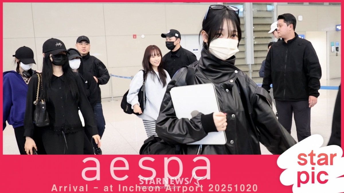 연예K-POP에스파 '오늘은 다같이 블랙!' [★영상]발행 : 2025.10.20 ・ 16:21인천국제공항=임성균 기자그룹 에스파(aespa) 카리나, 윈터, 지젤, 닝닝이 일본 공연을 마치고 20일 오후 인천국제공항을 통해 입국하고 있다. 2025.10.20<저작권자 © 스타뉴스, 무단전재 및 재배포 금지>공항패션입국에스파닝닝지젤카리나추천 기사임성균 기자기자홈좋아요 연예-K-POP의 인기 급상승 뉴스연예-K-POP의 최신 뉴스