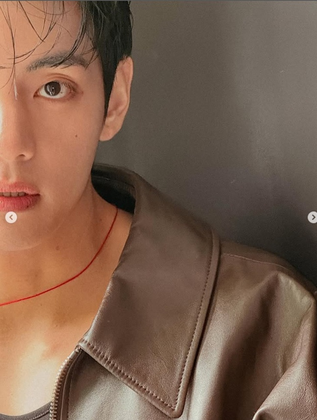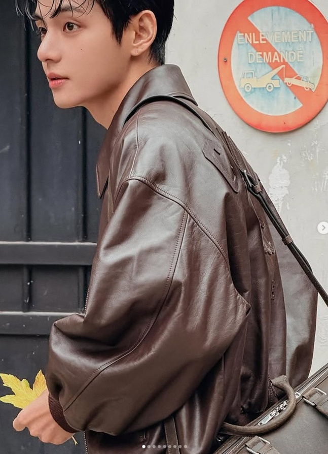이번 화보에서 뷔는 셀린느의 글로벌 앰배서더로서 브랜드의 시그니처 브라운 레더 재킷을 메인 아이템으로 선택했다. 오버사이즈 핏의 브라운 레더 재킷 안에는 블랙 이너웨어를 레이어드하여 모던하면서도 캐주얼한 분위기를 연출했다.