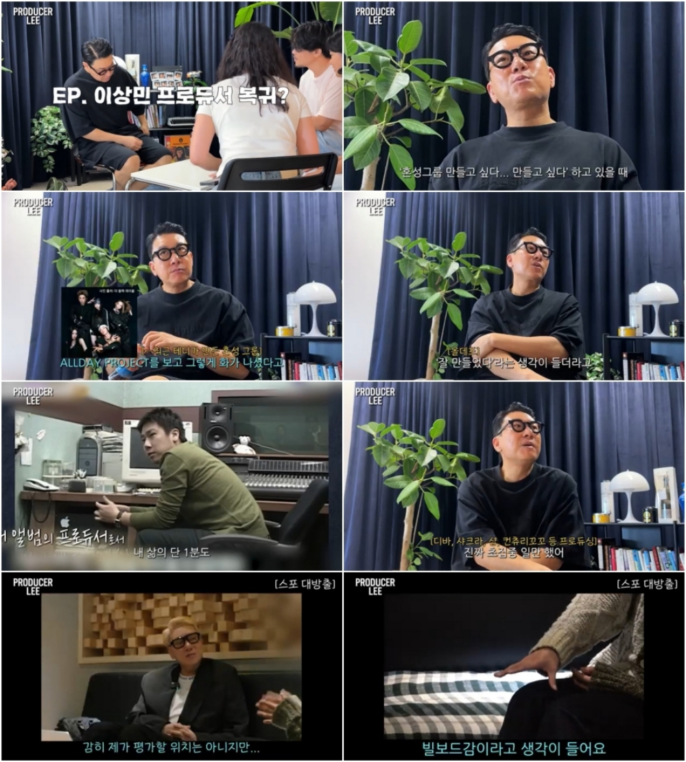 이어 그는 "이제는 팬덤이 남녀로 나뉘지 않고 한 팀을 함께 좋아하는 시대가 됐다"며 "남자 그룹과 여자 그룹을 굳이 구분할 필요가 없다고 느꼈다"고 말했다. 그러면서 테디가 제작한 혼성그룹 '올데이 프로젝트'를 언급하며 "난 너무 좋았다. 정말 잘 만들었더라"고 감탄했다.