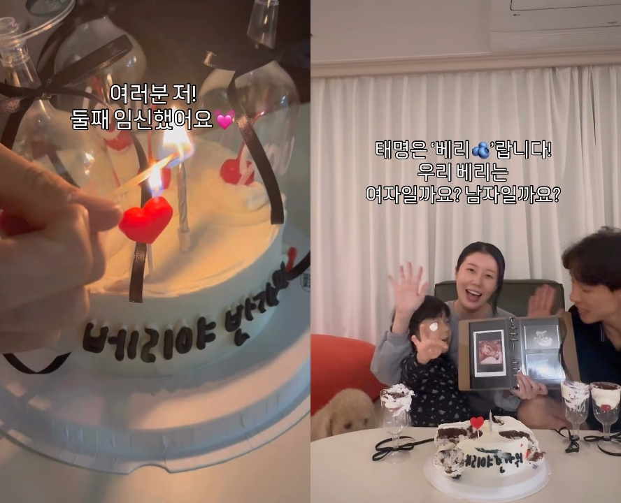 나비는 24일 자신의 인스타그램에 "여러분 저 둘째 임신했어요"라고 시작하는 글과 함께 한 개의 영상을 올렸다. 영상에는 뱃속 아기의 초음파 사진과 케이크에 꽂힌 촛불을 불며 둘째 임신을 자축하는 나비 가족의 모습이 담겨 있다.
