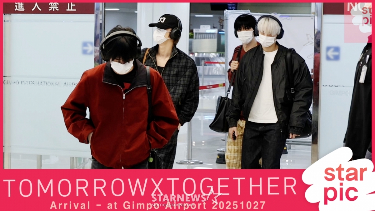 연예K-POPTXT '오리콘차트 1위 찍고 왔어요!' [★영상]발행 : 2025.10.27 ・ 15:26김포국제공항=임성균 기자그룹 투모로우바이투게더 태현, 휴닝카이, 범규, 연준, 수빈이 일본 일정을 마치고 27일 오후 김포국제공항을 통해 입국하고 있다. 2025.10.27<저작권자 © 스타뉴스, 무단전재 및 재배포 금지>공항패션입국투바투투모로우바이투게더태현휴닝카이추천 기사임성균 기자기자홈좋아요 연예-K-POP의 인기 급상승 뉴스연예-K-POP의 최신 뉴스