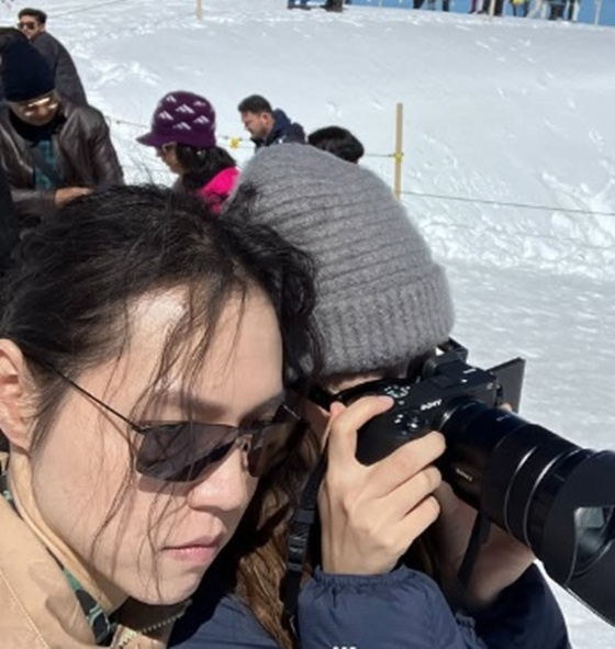 공개된 사진 속에는 두 사람이 얼굴을 가깝게 맞대고 있는 모습이 담겼다. 이들은 다정한 분위기 속 여행을 즐기는 모습이다.