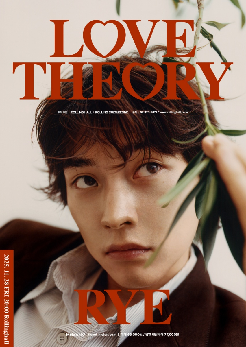 한편, 11월 28일 홍대 롤링홀에서 열리는 RYE의 단독 콘서트 'Love Theory'의 티켓 예매는 오늘(31일) 오후 8시부터 멜론 티켓에서 단독으로 진행된다.